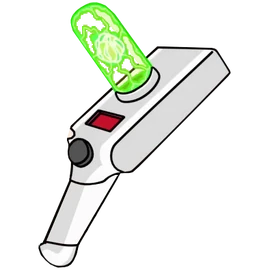 - В зелёной «колбе» на пушке находится радиоактивный энергокристалл который питает устройство, при разбивании колбы переходит в жидкое состояние.