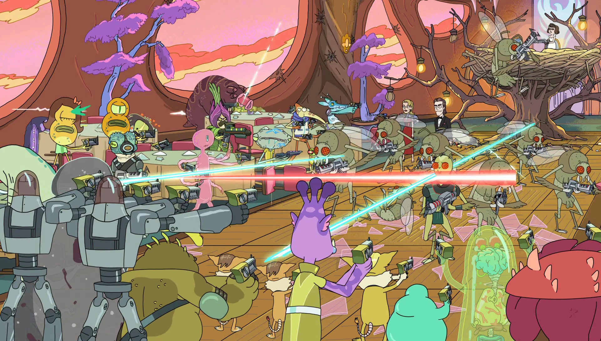 An Arbolian Mentirososian came to Birdperson and Tammy's wedding on Planet Squanch. During the reception, he took part in the gunfight with the Gromflomites, using four guns at the same time. Unfortunately, he was shot and killed like many other guests.