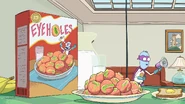 Eyehole Man is a spandex-clad alien with a megaphone who lives to beat up anyone who is caught with the cereal Eyeholes. He is featured in various commercials across the galaxy, as shown in the episode Interdimensional Cable 2: Tempting Fate. He claims that only he can have Eyeholes. Rick Sanchez tells Morty Smith not to be caught with a box of Eyeholes in his possession when the Eyehole Man is around or else he'll start beating him up to get his box of Eyeholes back, but that it is worth the risk.