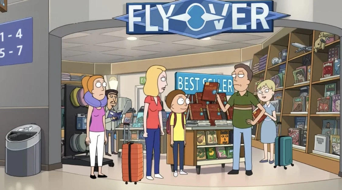 In the episode "Morty Daddy", the Smith Family stop at the store within an airport terminal and read Morty Jr.'s latest book, My Horrible Father II: Goodbye Sex Mom presumably sometime after the events of the episode, until they leave on order to catch their flight.
