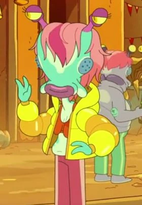 Hrinchs are bipedal, eye-stalked humanoid creatures with nipples on their elbows and many of the Hrinchs lick the nipples of other Hrinchs as a form of pleasure. The Hrinchs make their first appearance in "Interdimensional Cable 2: Tempting Fate" but only have a major role in "A Rickconvenient Mort". They are partying because Morglutz's home star is going supernova. Their species is presumably extinct with the exception of Daphne who stowed away with Rick Sanchez and Summer Smith and now lives on Ferkus 9.