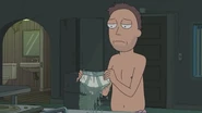 In "The Whirly Dirly Conspiracy", some brief insight to Jerry's life in his apartment was shown. Jerry had to wash his clothes in the sink, and his bedroom was the same room as his kitchen. He felt nothing but pain and sadness over the loss of his wife and children. Shortly after this, Rick busted into the room and dragged him off to another crazy adventure.