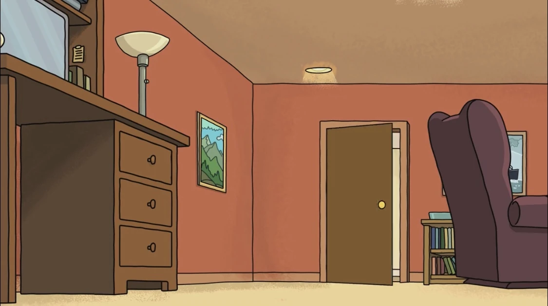 Jerry’s Man Cave is a room within the Smith Residence. It is used by Jerry for relaxation and to indulge in his hobbies. It is first seen when Jerry bonds with Doofus Rick. It is later used by Jerry to plan and launch the Lovefinderrz app with Glootie and to print out his book, "Never Trying Never Fails", on his computer. It has also been used by Morty to watch a movie with Jessica and the family as a bedroom for Diane within the Fear Hole.