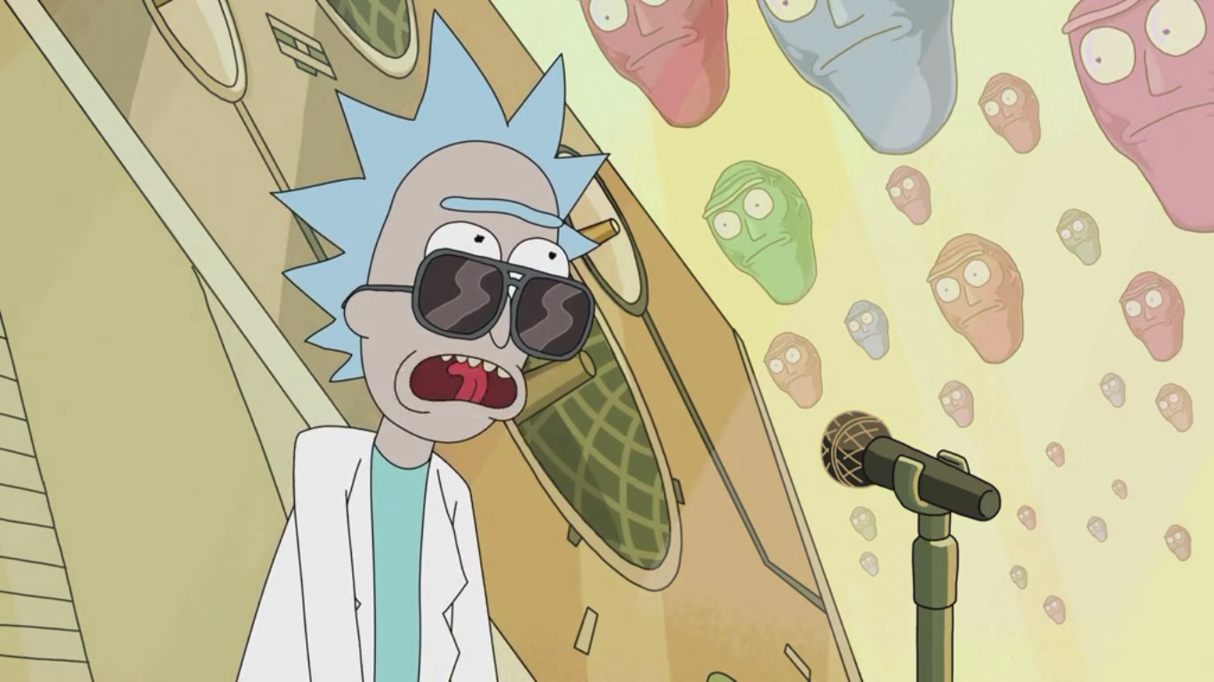 Rick's only live performance of "Lapoo Lapoo Lapoo Dops" was paralleled by a chorus of booing and unhappy Cromulons. However, the poor reception from this song actually helps save Beth and Jerry from dying in a cult ceremony.