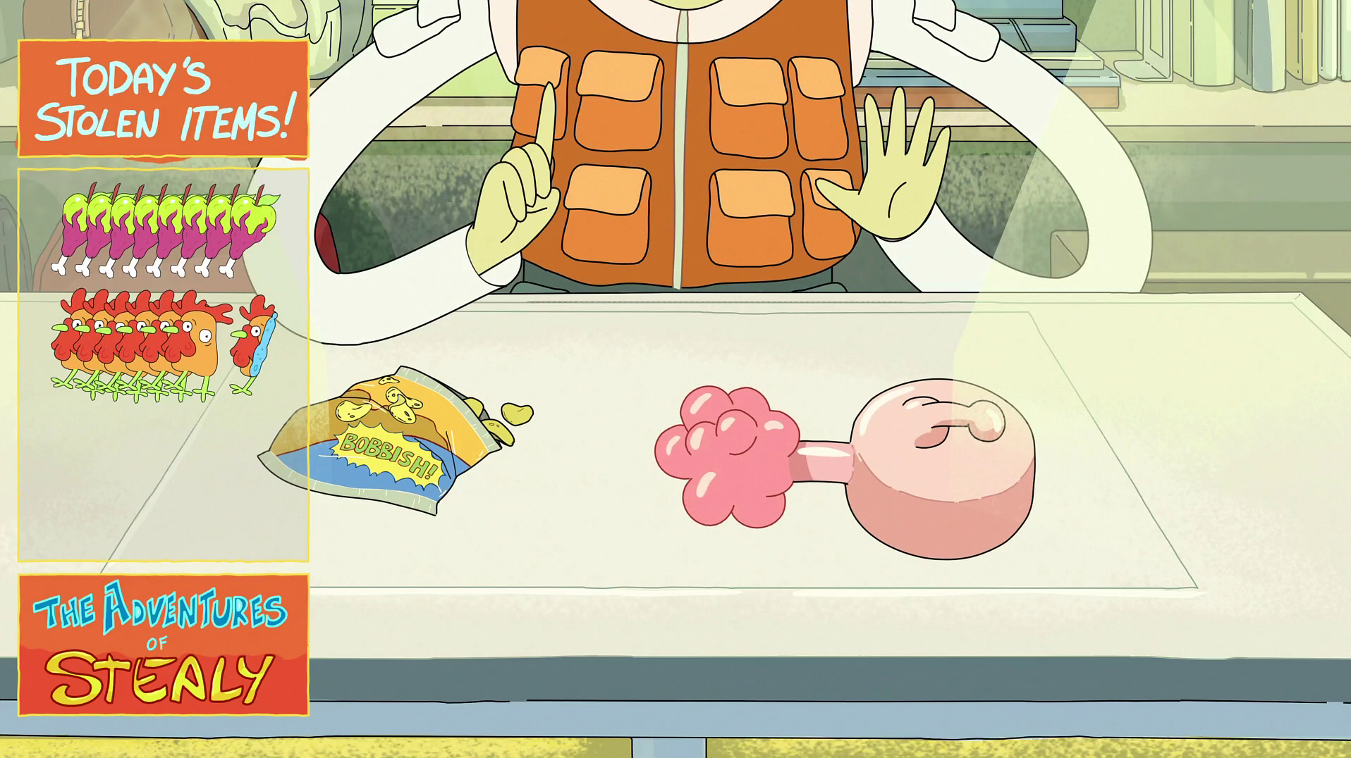 A Plumbus is an all-purpose home device. Everyone knows what it does, so there is no reason to explain it. It was first shown in the episode, "Interdimensional Cable 2: Tempting Fate" where it was seen twice on the Interdimensional TV. First, when Stealy stole one from a workplace and again in an episode of "How They Do It" that shows the viewers how plumbuses are made. It is described as a common household and office item that is also used as an accent piece to a room. According to Stealy, Plumbuses are worth six-and-a-half Brapples.