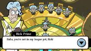 Rick Prime is the first Rick in the Council of Ricks the player must battle to get back the portal gun. You're required to have two gym badges to battle him.