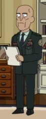 Steve is a presidential aide first seen in the episode Mortyplicity. He is alerting the President of a confluence of Rick Sanchezes killing each other over the American Southwest. The President chooses to ignore the problem instead asking how many states voted for him. Steve then tries to tell him what the purpose of the electoral college is but he is interrupted by the President, who claims that it is used to preserve slavery. The President then tells Steve to bring him a Diet Coke.
