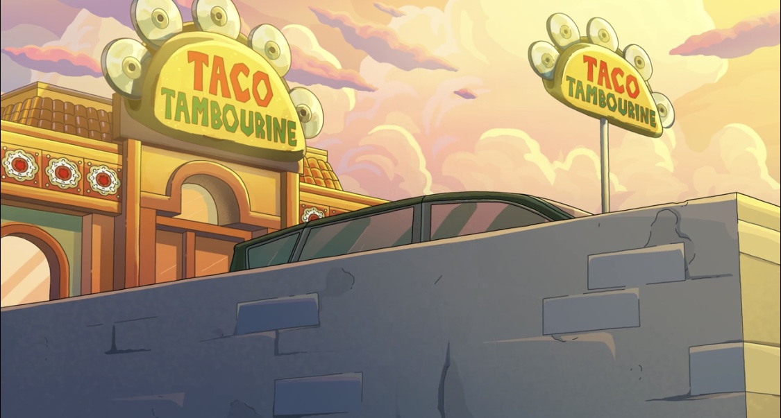 Taco Tambourine is a taco fast food restaurant that Rick and his friends visit to grab food after fighting Gul'Karna and Mr. Poopybutthole speaking to Amy one last time. At the restaurant, they all go their separate ways while Gene unsuccessfully tries to get the "Best Friends Burrito Box" meal which can only be purchased with friends. It first appears in "How Poopy Got His Poop Back".