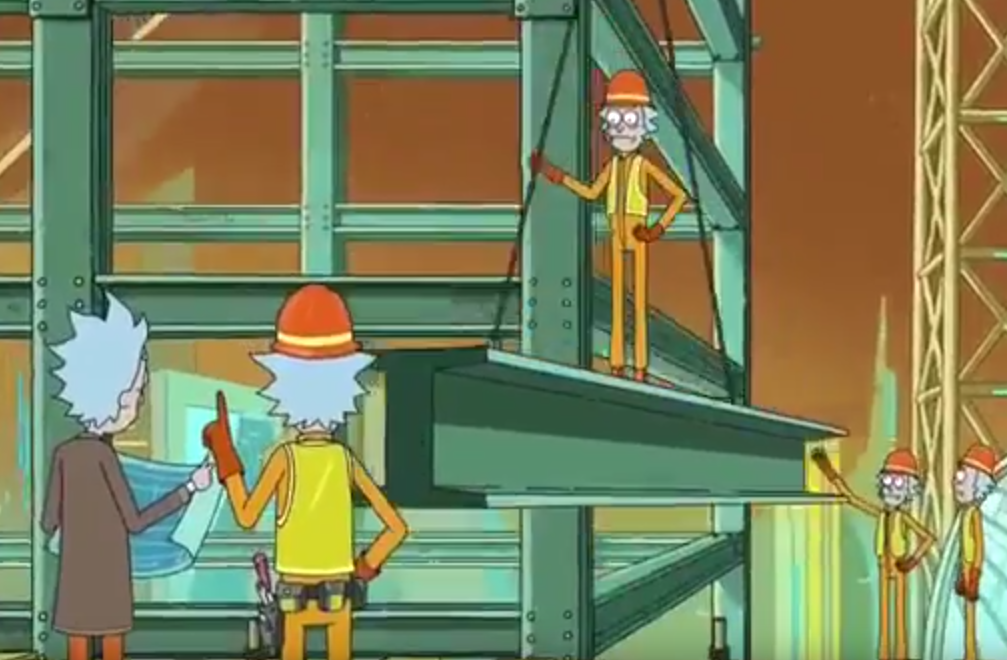 Rick construction workers repairing the Citadel in the aftermath of the Rickshank Redemption