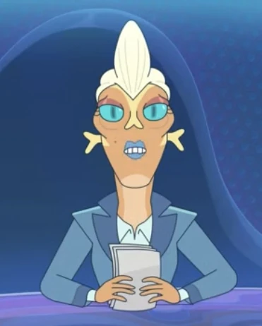 Tim is first seen in "Cryo Mort a Rickver" reporting on the high speed race across Blackjack 9 which the people of Plociff, Rick and Morty participate in order to get the money stolen from Jimmy Jamerson and Guffy Chachaco. Her co-reporter Glizop then reveals that he is joining the race and takes off, destroying their news camera in the process.