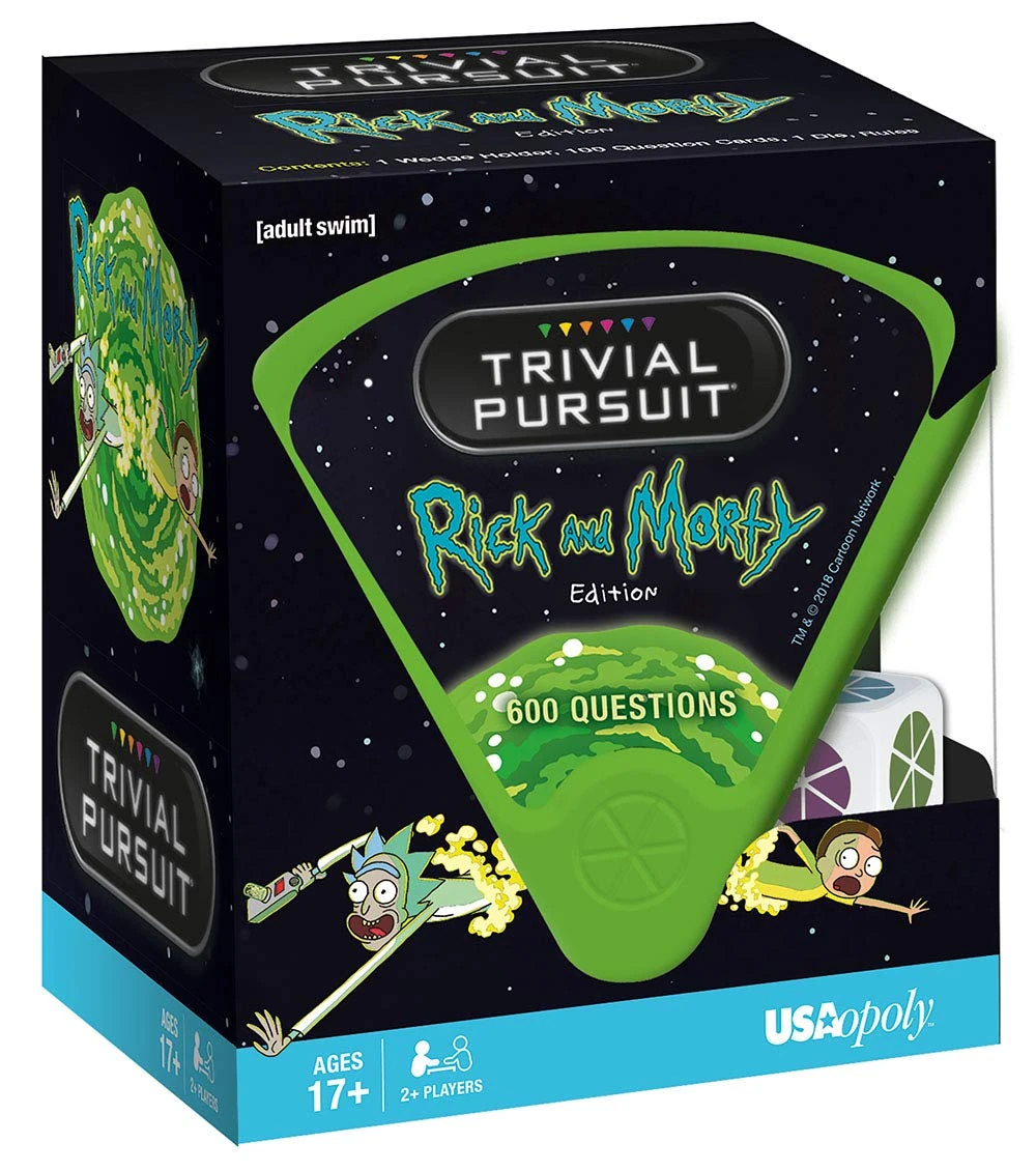 Trivial Pursuit: Rick and Morty is an officially licensed Rick and Morty themed version of board game Trivial Pursuit that released in 2018 by USApoly Inc.